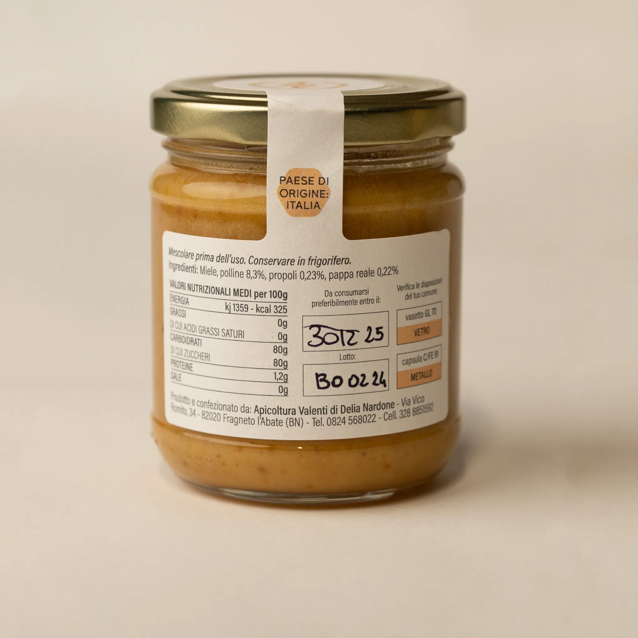 Il Miele Bomba è un integratore naturale straordinario che racchiude in un’unica preparazione tutti i benefici sinergici del miele, del polline, della propoli e della pappa reale. Questo prodotto è particolarmente adatto a sportivi, anziani, studenti, bambini in fase di crescita e a tutte le persone spossate e convalescenti che necessitano di un supporto energetico e nutritivo.